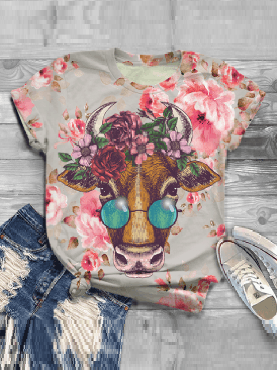 Product: Casual Impression Glasses Cow Print Fashion T-shirt